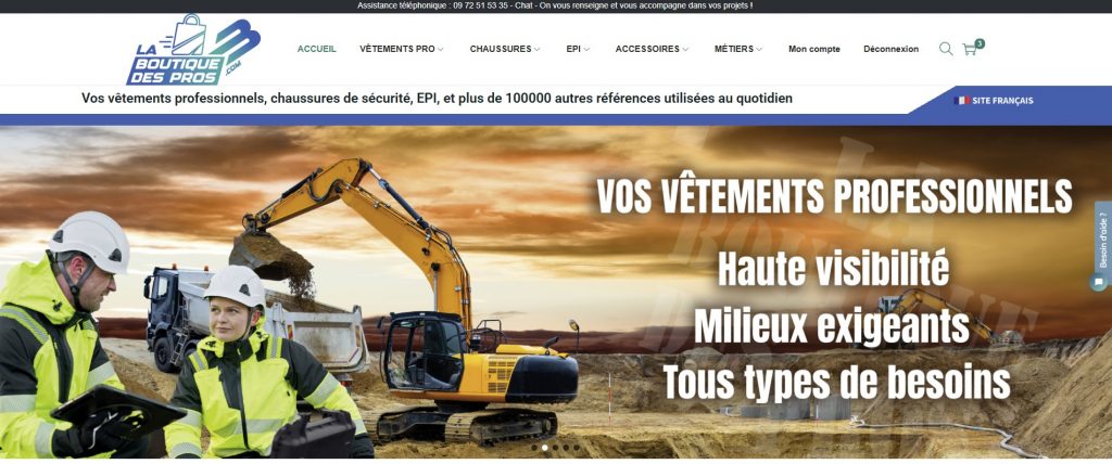 Nous mettons à votre disposition un site de vente ligne sur lequel vous trouverez plus de 120 000 références sélectionnées par nos soins qui répondront à une grande majorité des vos besoins. RDV sur www.laboutiquedespros.com ! Notre site de vente en ligne propose un grand choix de vêtements et EPI, paiements et données sécurisés, et vos commandes seront traitées rapidement. En outre, vous pourrez y suivre l’état de vos commandes et gérer vos commandes via votre interface utilisateur.